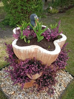 Igyekszem "mesés" hangulatot teremteni különböző kerámia figurákkal, gombákkal, madár itatókkal, és csoda szép kerti kaspókkal.